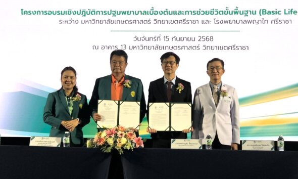 มหาวิทยาลัยเกษตรศาสตร์ วิทยาเขตศรีราชา จับมือ โรงพยาบาลพญาไท ศรีราชา ลงนาม MOU สร้างเครือข่ายปฐมพยาบาล