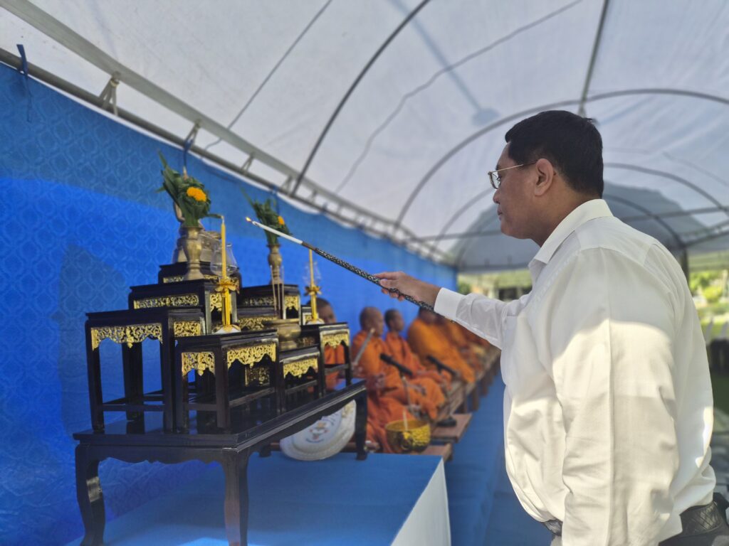 ภายในงานช่วงเช้า เวลา 08.30 น. มีพิธีทำบุญตักบาตรอาหารแห้งแด่พระสงฆ์จำนวน 9 รูป จากนั้นเวลา 09.30 น. เป็นพิธีสงฆ์และสรงน้ำพระพุทธรูป เพื่อความเป็นสิริมงคล ก่อนเข้าสู่พิธีรดน้ำขอพรผู้บริหารในเวลา 10.30 น. และร่วมรับประทานอาหารกลางวันในเวลา 11.30 น.